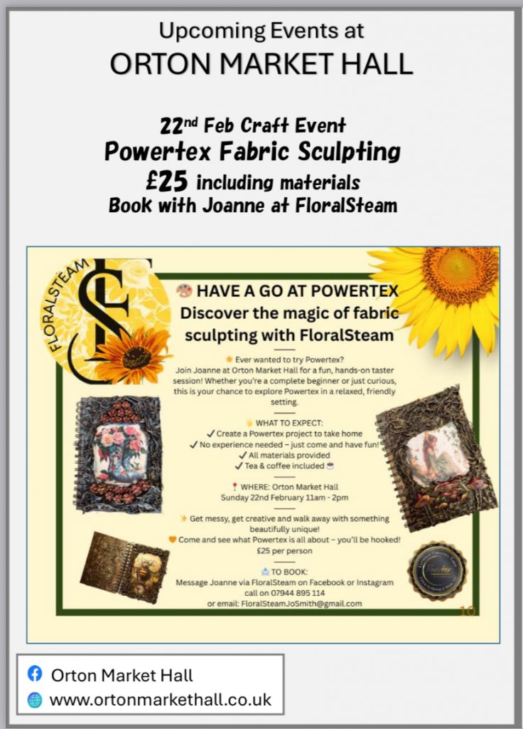 | SATURDAY | ORTON FARMERS MARKET (2nd Sat of the Month) | 9:00-14:00 |